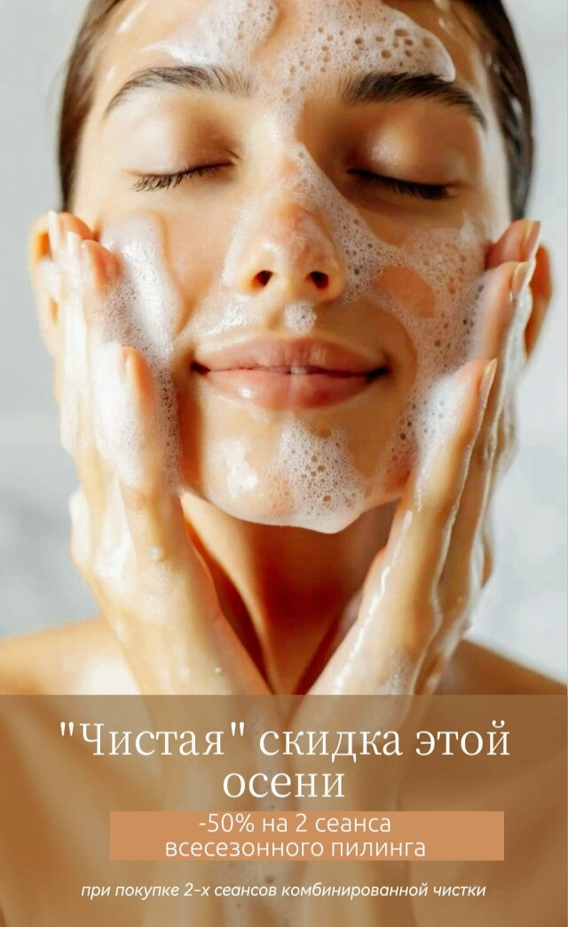 "Чистая" скидка осени -50% на 2 сеанса всесезонного пилинга